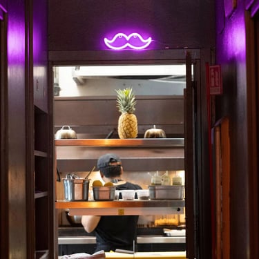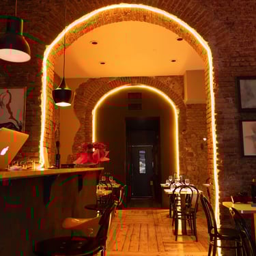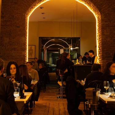 L’atmosfera del Losko — neon, legno , mattoncini a vista — crea uno spazio raccolto e informale, perfetto per un evento aziendale curato ma non ingessato.